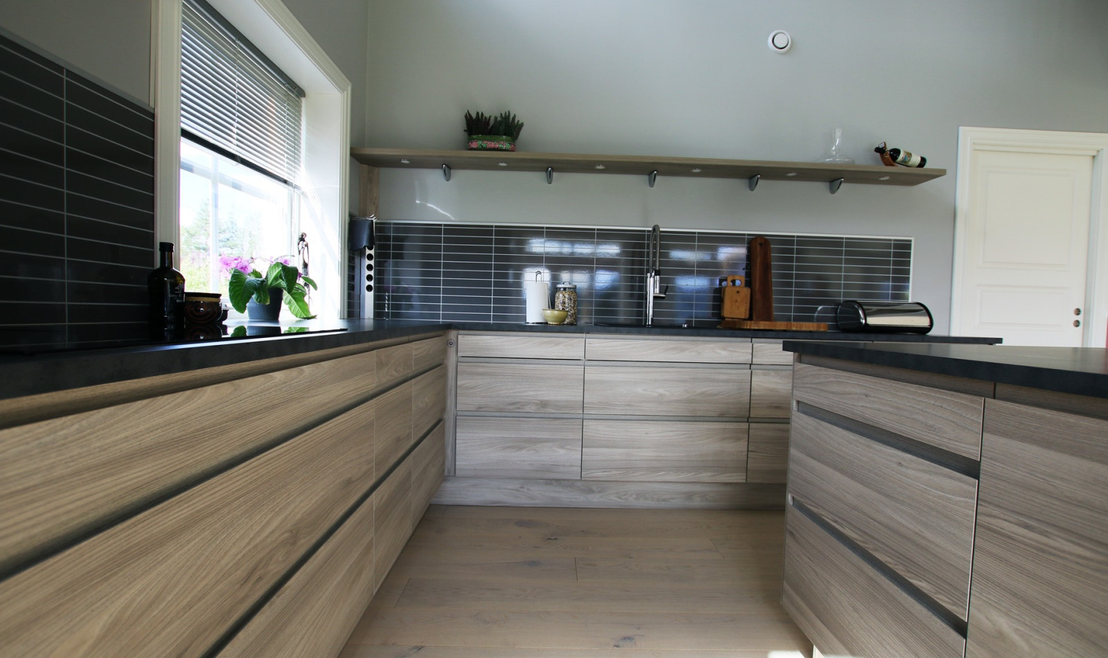 En vakker strukturfront i en varm fargetone med integrert grep.